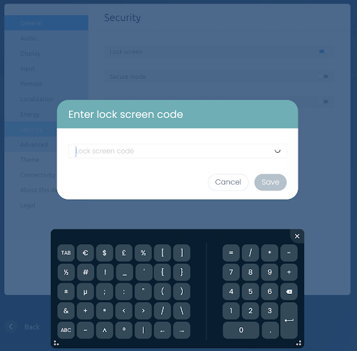 After you have created the code, the security screen will be expanded with options for NFC and/or locking via a USB key.