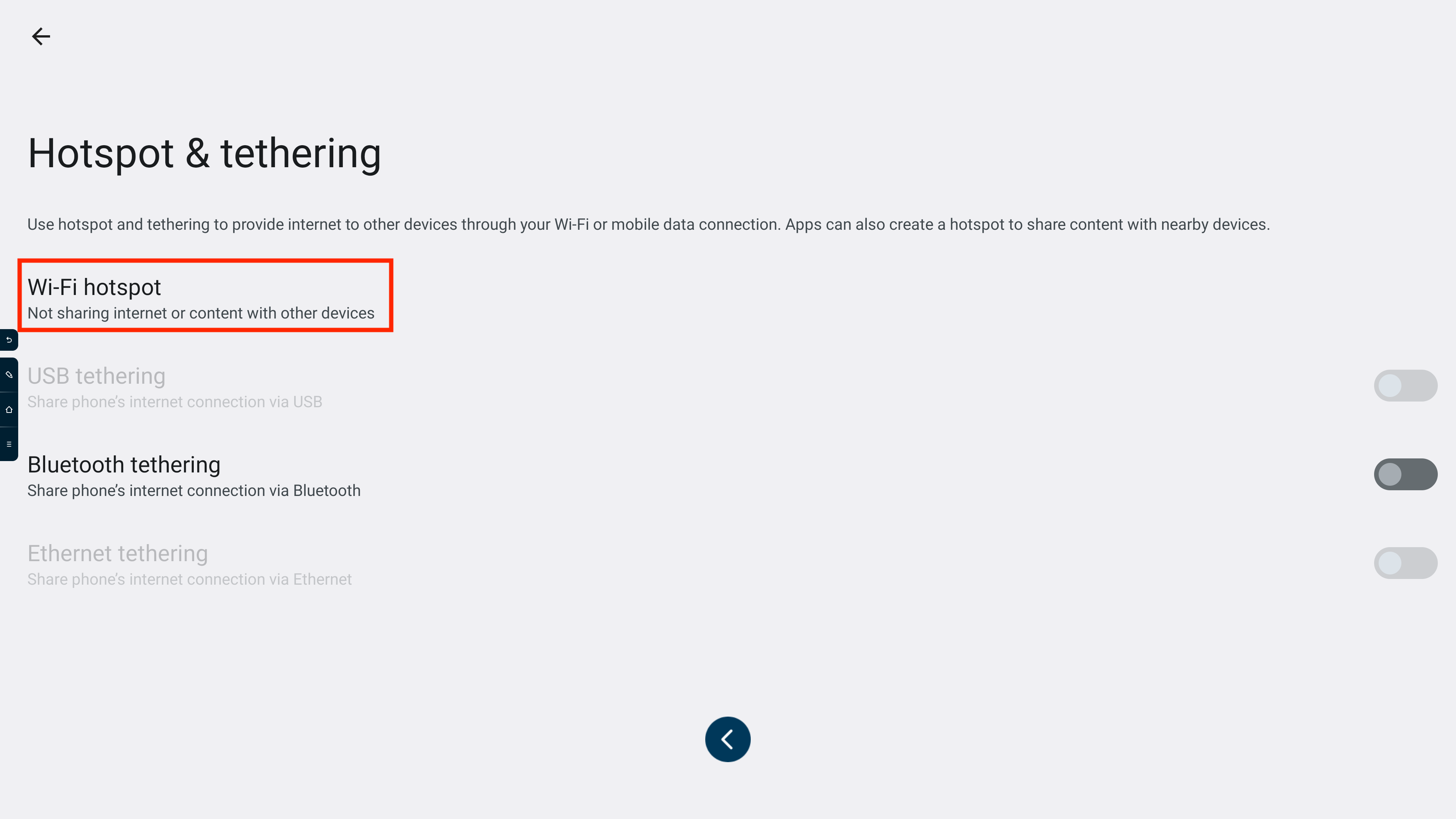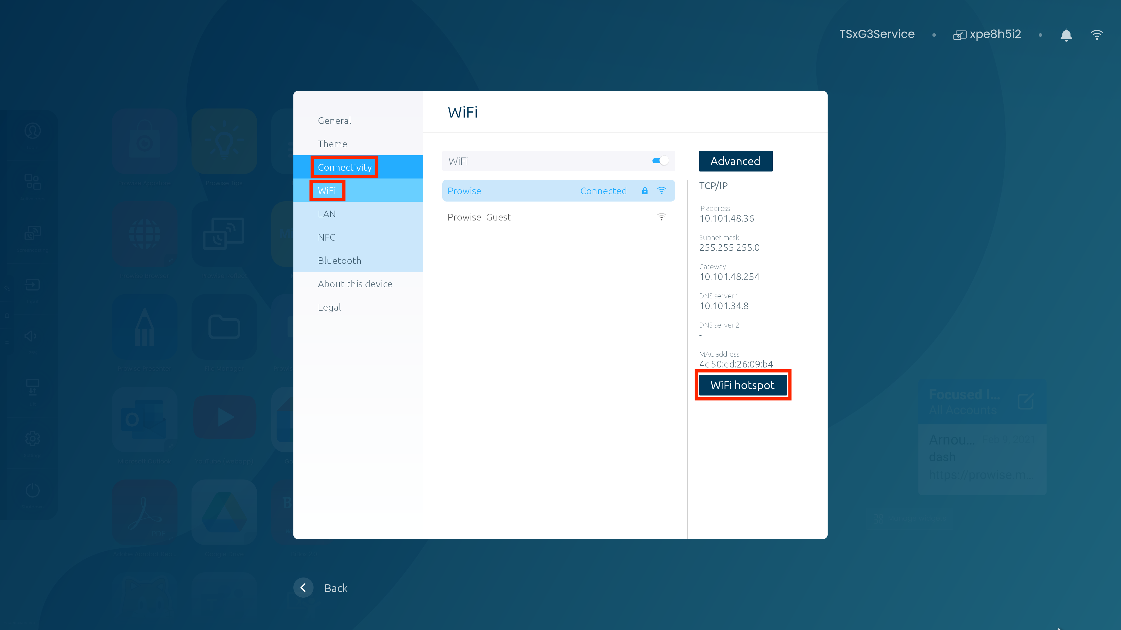 - Sélectionnez « Connectivité », puis « Wi-Fi ». Cliquez ensuite sur le bouton « Wifi Hotspot ».