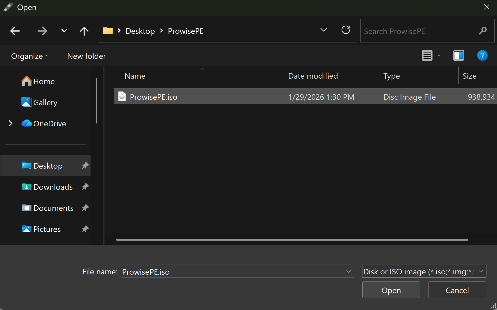 Étape 1 : Téléchargez le fichier ProwisePE.iso et placez-le dans un dossier facile à trouver (comme votre bureau) sur votre appareil Windows.