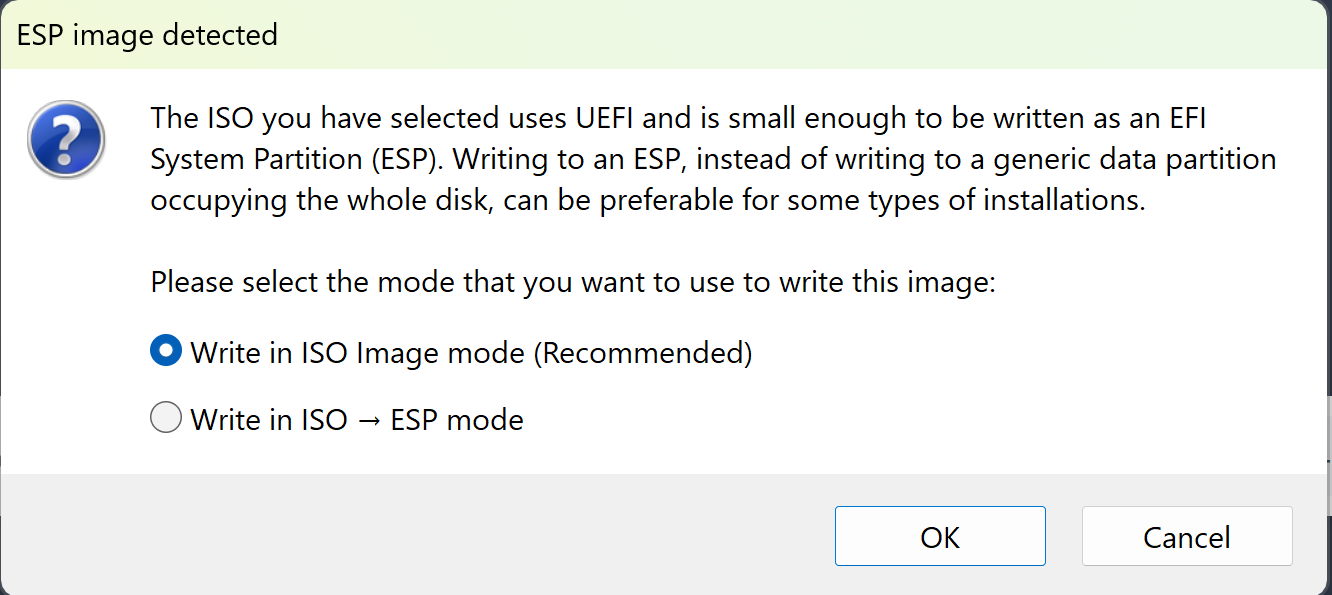 Sélectionnez « Écrire en mode image ISO (recommandé) » et appuyez sur « OK »