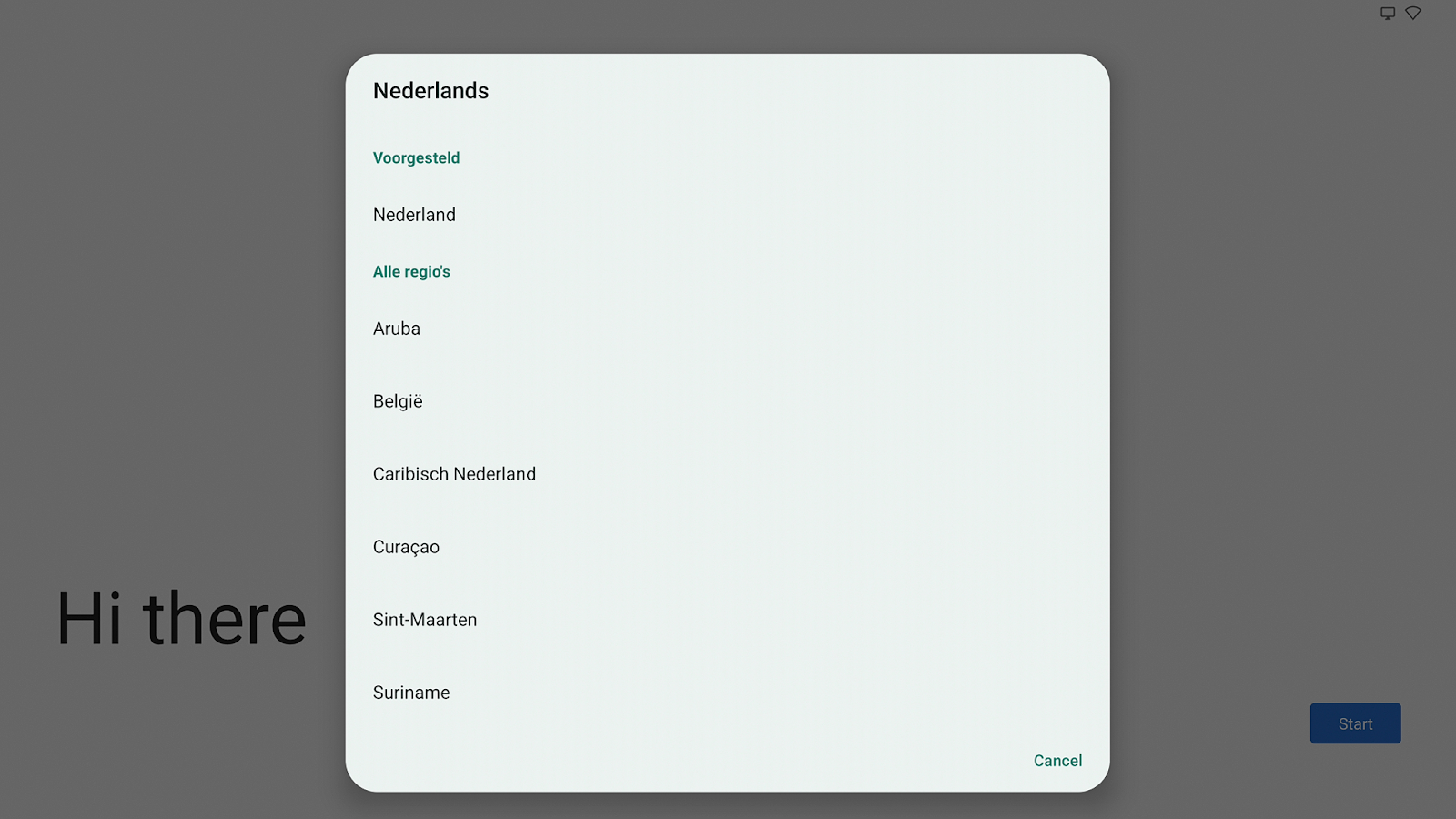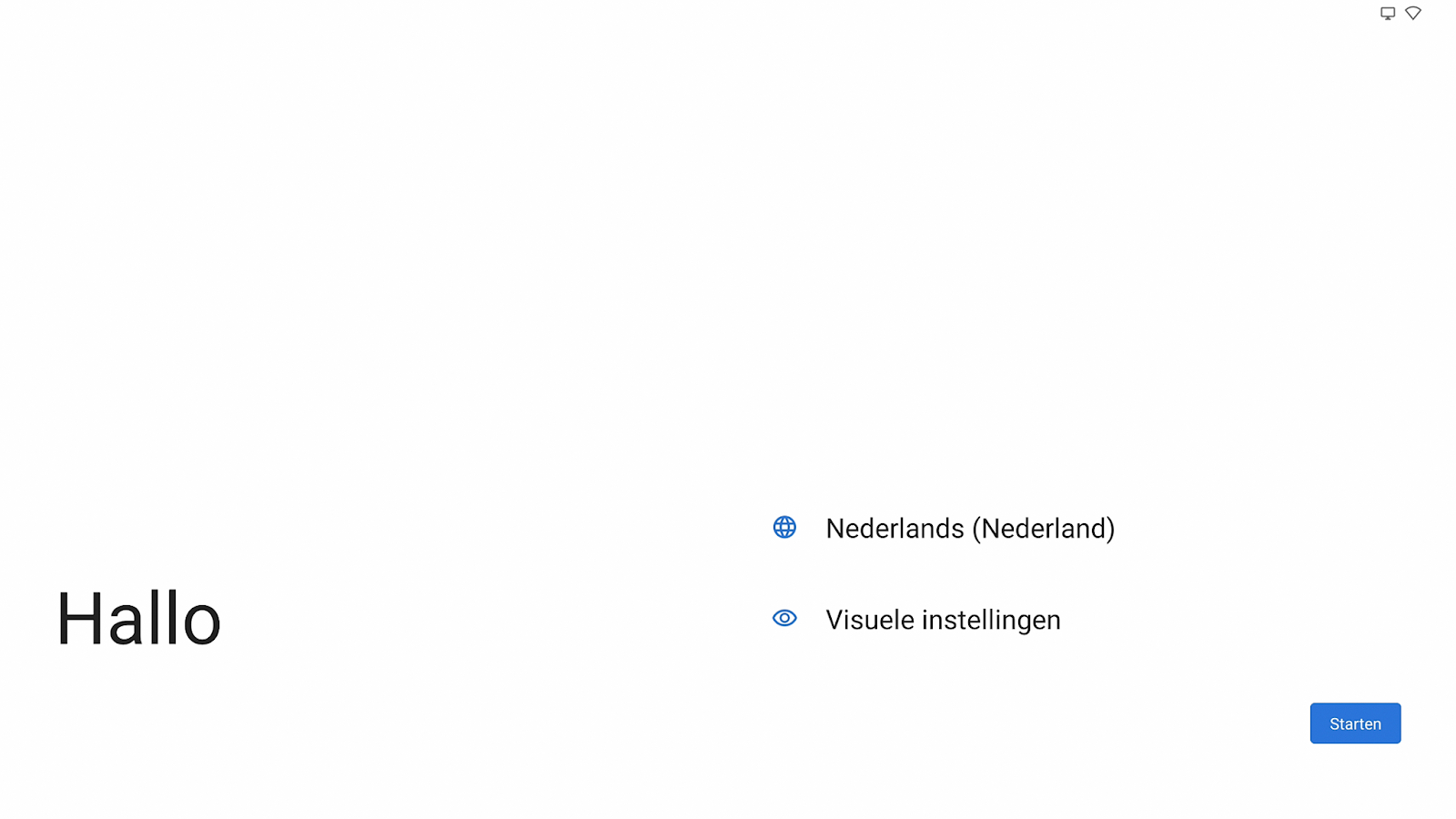 Druk na de taal selectie op 'Starten' om verder te gaan met de setup: