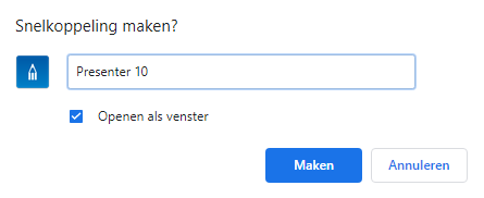 - Vul vervolgens de naam van de snelkoppeling in, bijv. Presenter 10.