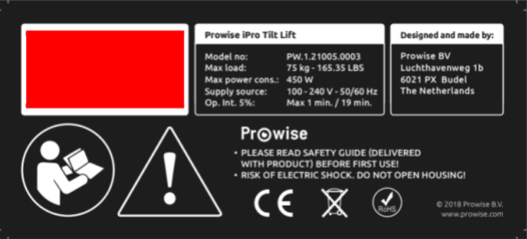Het serienummer staat in het eerste vakje (rood gemarkeerd) op de sticker (dit is een voorbeeld van een iPro Tilt Lift sticker).